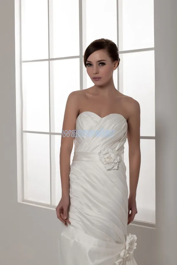 Buy free shipping 2014 new design hot bridal gown good quality custom size/color handmade flower small train sheath wedding dress